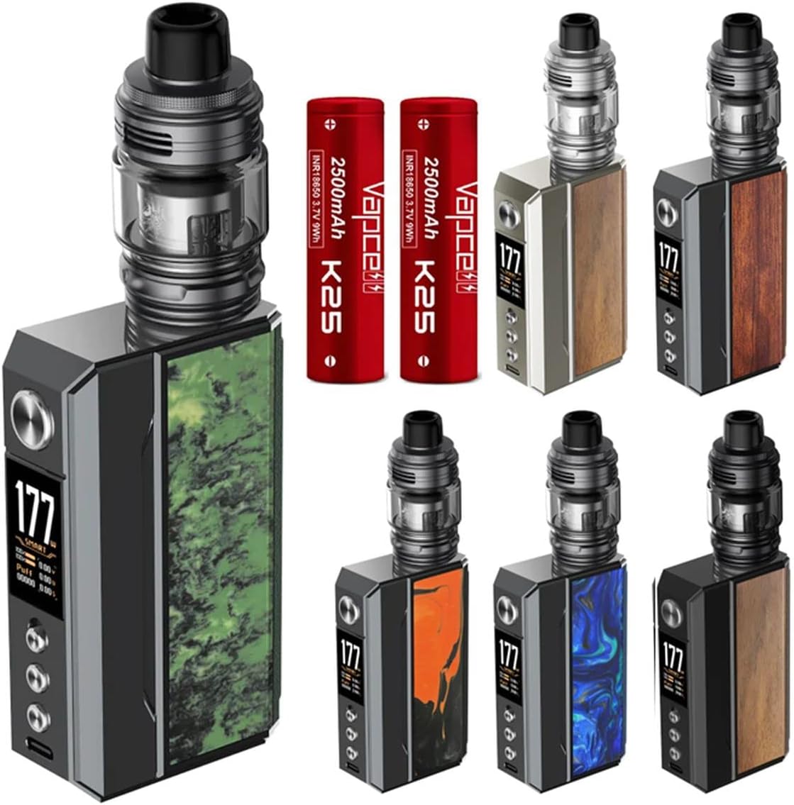 | バッテリータイプ | 18650電池×2本(別売) | 18650電池×2本(別売) | 18650電池×2本(別売) | 18650電池×2本(別売) | 18650電池×2本(別売) | 18650電池×2本(別売) | 2000mAh内蔵 | 3000mAh内蔵 | シングル18650 or 21700電池(別売) | 800mAh内蔵 |