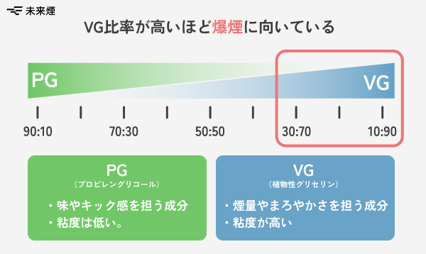 リキッド選択 – VG高配合リキッドにすることで大量の煙を発生させられる