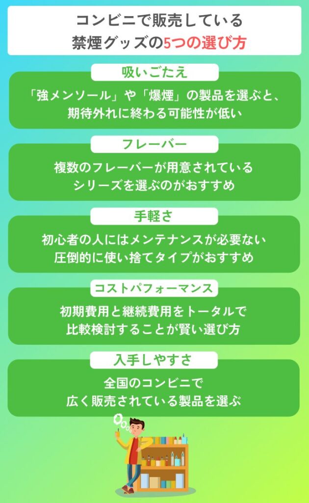 コンビニには様々な禁煙グッズが並んでいるため、どれを選べば失敗しないのか迷ってしまうことも少なくありません。