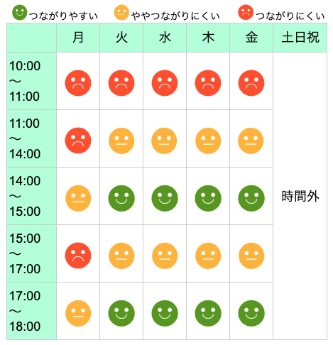 ただ、上記の電話番号に繋がりにくい時間帯があるので注意が必要です。