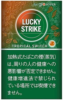 ラッキー・ストライク・トロピカル・スイッチは、トロピカルフレーバーのカプセル入り銘柄です。ベリー・スイッチと同様に、カプセルによる味の変化が楽しめます。
