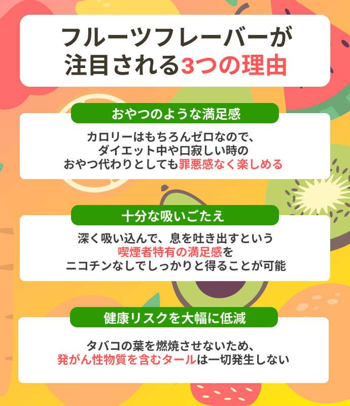 フルーツフレーバーの最大の魅力は、その甘く美味しい香りです。